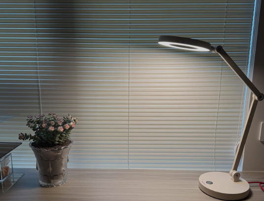 该型号的灯头及发光面是环形的,不仅光照均匀,还减少了影子。搭载紫光全光谱,眼睛不易劳累,蓝光比RG0少83%。它的中心区域均匀度2.84,符合AA级,无可视频闪。拥有3档色温,晚上学习为4000k,既能保持专注,又不影响睡眠。Ra=97,可以让书本的颜色更还原。