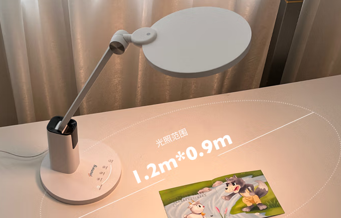 这款台灯可以带来超广域照明,能使1.2m的桌面高亮无暗区,轻松优于国AA级。它的发光芯片采用侧面排布,避免了光线直射。它的中心区域均匀度为1.38,让孩子感知不到明暗差异,眼睛更舒服。拥有UL钻石级光源,Ra=97,R9=90,色彩表现力强。光线输出稳定,光输出频率>3125Hz,色温有3000k和4000k两档。