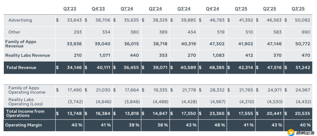Meta CFO还在展望评论中提到,2025年Q4,预计公司总收入在560亿-590亿美元之间,广告收入保持强劲增长,但会被Reality Labs收入同比下降相抵消。而Reality Labs收入下降的主要原因是受公司在2024年Q4推出的Quest 3S影响,以及零售合作伙伴在2025年Q4采购Quest头显以备节日季销售,而这部分采购已在Q3被计入收入。