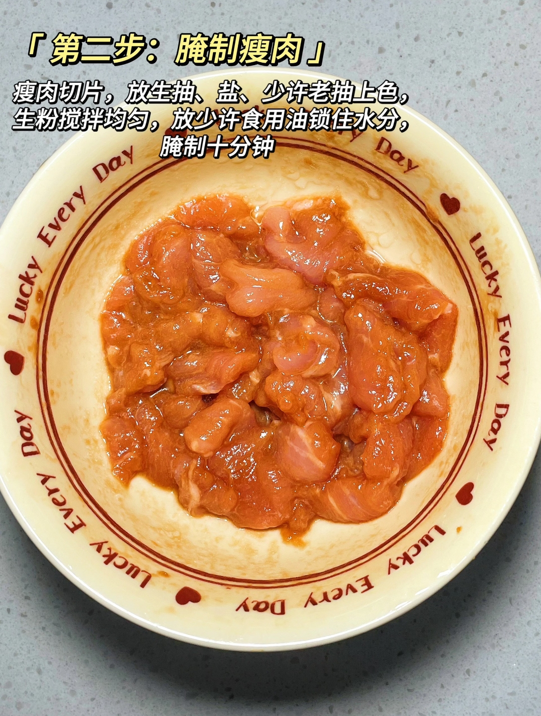 这道菜的灵魂,首先在于肉片的处理。许多人炒肉容易变老,问题往往出在腌制环节。选取新鲜的瘦肉,逆着纹路切成薄片,这是保证口感细腻的第一步。接着便是最关键的“码味”:加入生抽提鲜、盐定底味、少许老抽上色,撒入适量生粉后用手抓匀,让每一片肉都裹上浆衣,锁住内部水分。此时千万别急着下锅,再淋入少许食用油拌匀,这层“油膜”能在高温翻炒时进一步防止肉片粘连与脱水。静置腌制十分钟后,肉片便蓄势待发。