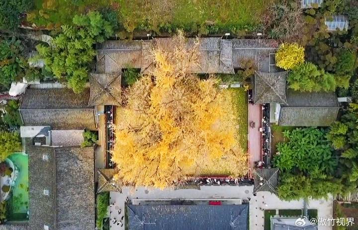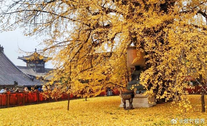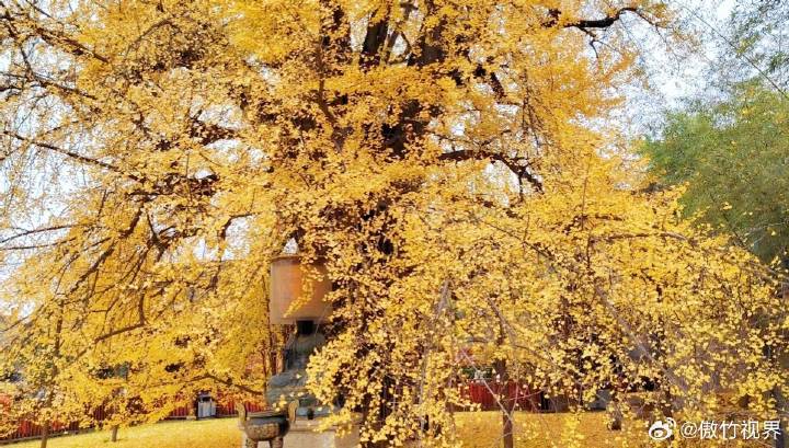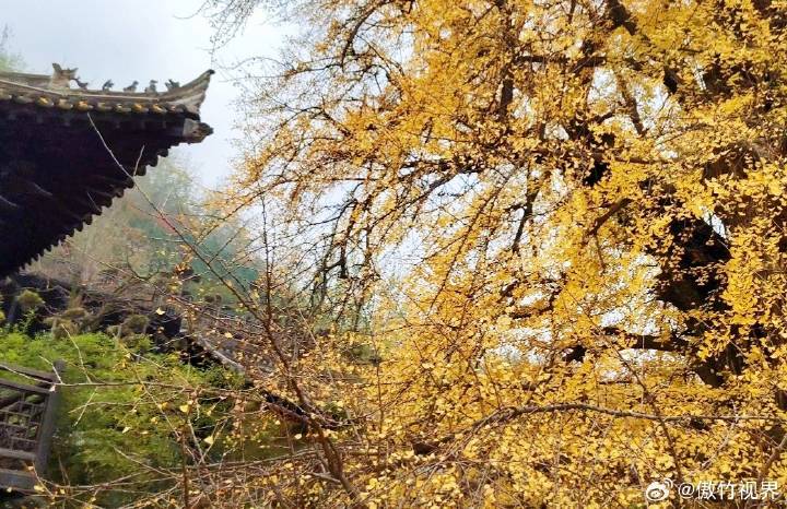 小雪节气天虽寒,秦岭脚下秋正酣。每逢深秋时节,寺中的古银杏树会变得金黄,就会吸引众多游客前来观赏。