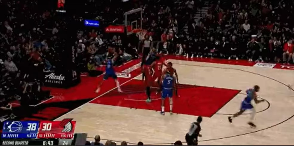 首节末段登场约2分29秒即高效输出:1投1中拿到4分,并揽下2篮板1助攻1抢断,完成“迷你两双”级别的效率表现;其中一次跟进补篮与一次造犯规两罚全中尤为亮眼,首节结束时其正负值位列全队第一。第二节他继续送出弧顶直塞助攻(助乐福得分),并完成一次钉板大帽(封盖艾萨克),半场合计4分2篮板2助攻1抢断1盖帽,在有限时间内展现出攻防两端的全面性与比赛影响力。