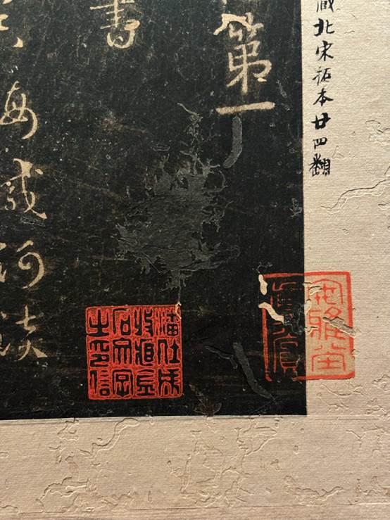 (展示《秘阁续帖》宋拓残页晋唐真脉,下真迹一等——《秘阁续帖》代表了北宋官方刻帖的最高水准。)