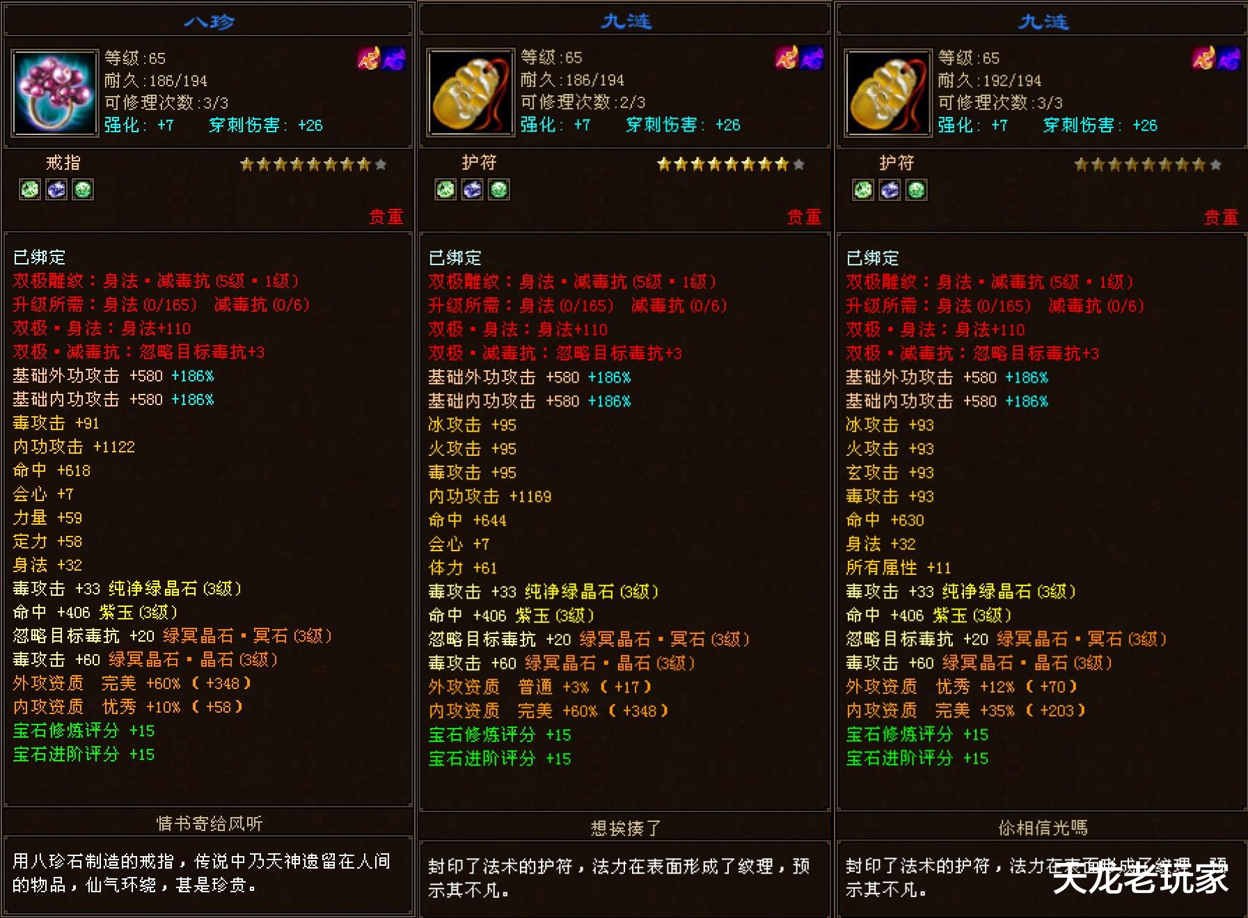 戒指护符也不错,尤其是这个冰火玄毒四属性93点的大八星护符!