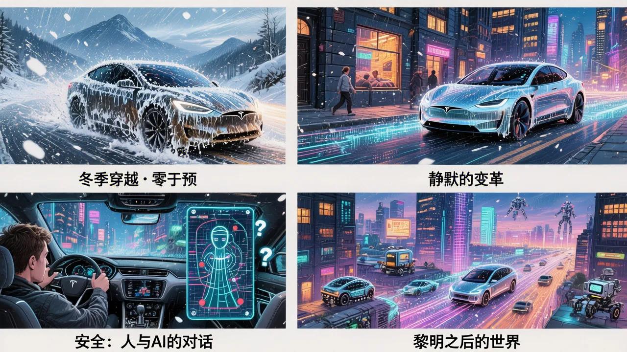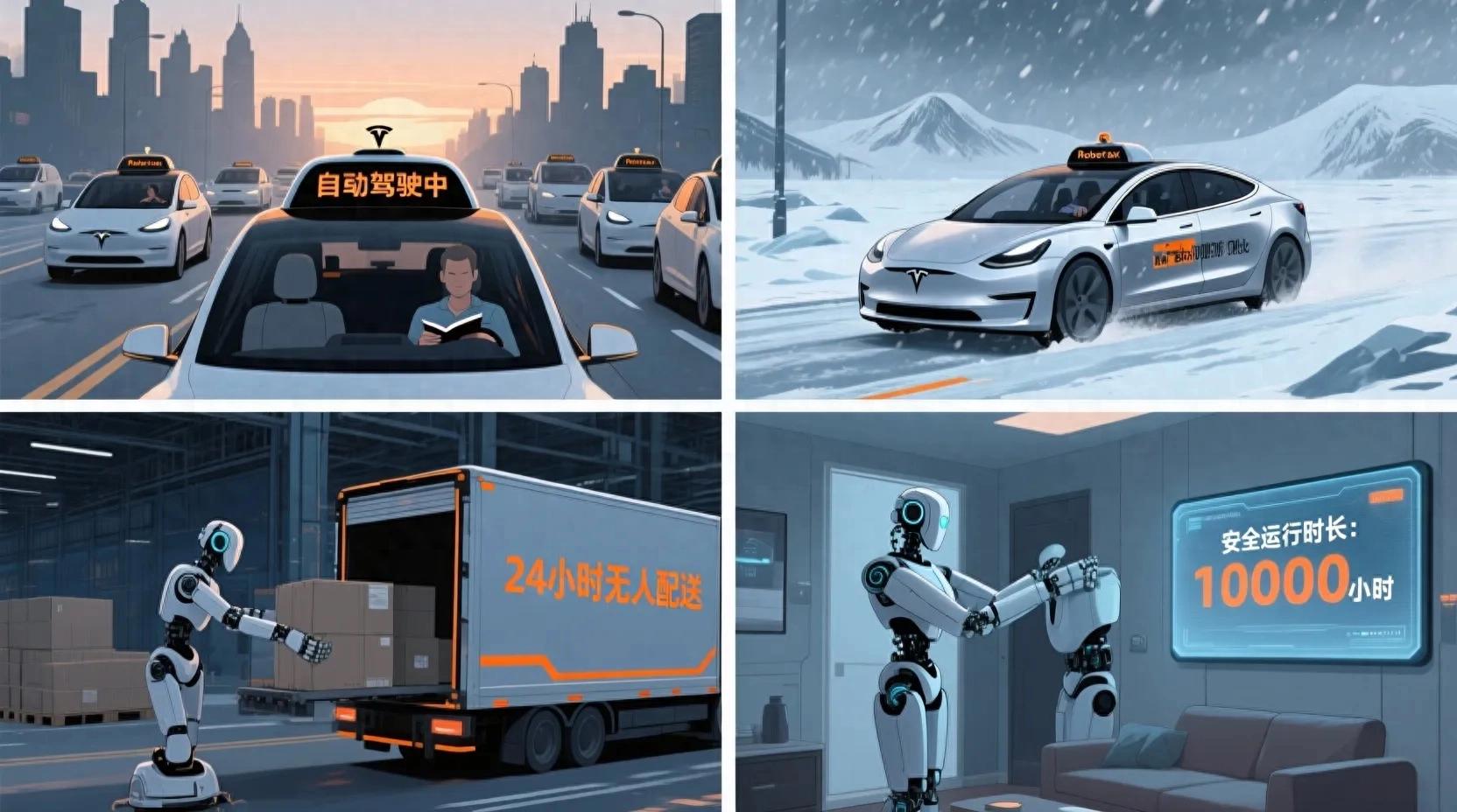 就在几个月前,一辆特斯拉在完全自动驾驶模式下,完成了从洛杉矶到纽约横跨美国大陆的冬季穿越。全程三千多英里,历经暴雪、冰雨,系统做到了零人工干预。这不再是实验室里的演示,而是在真实、复杂、恶劣的公共道路上的长距离验证。几乎同时,特斯拉那款没有方向盘和踏板的无人驾驶出租车(Robotaxi),已被确认进入大规模生产阶段,并在阿拉斯加进行极寒测试。吹牛不会吹出在冰雪路面上稳定行驶的量产车。这两个信号清晰地表明,技术从“演示”到“量产部署”的最后一道工程鸿沟,正在被跨越。