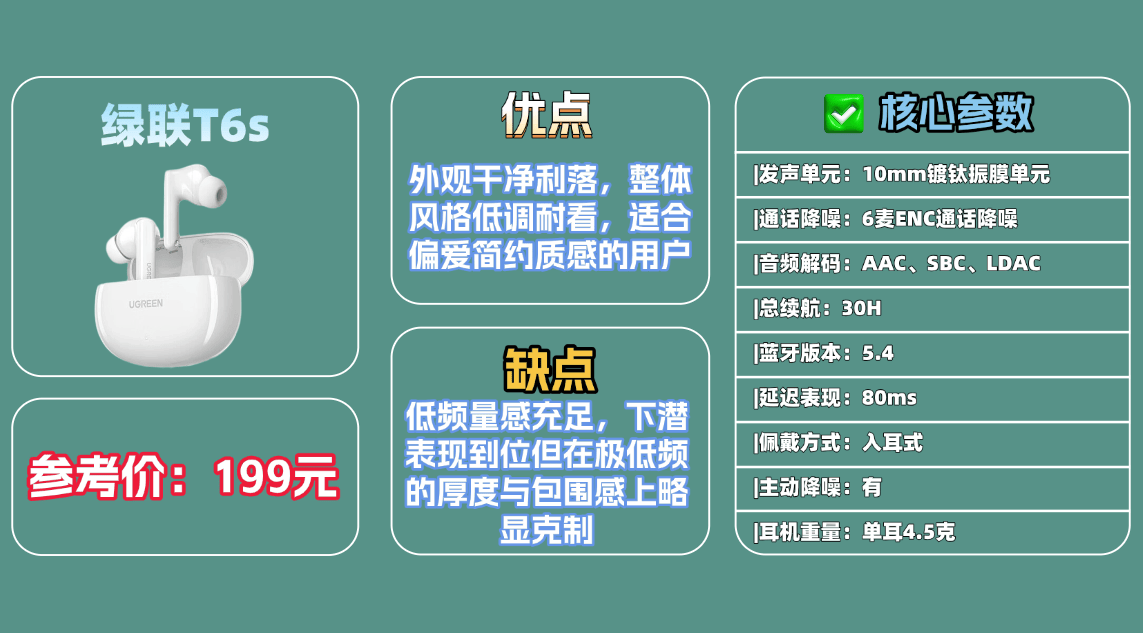 4、绿 联T 6s蓝牙耳机