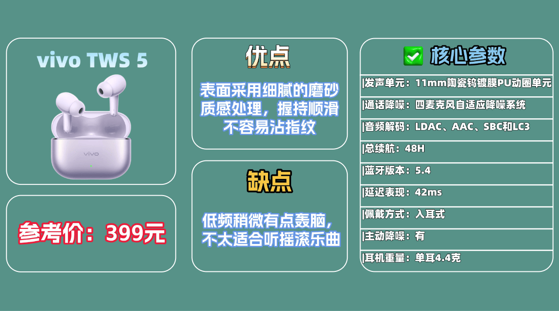 ③ 追求个性化需求:V ivo T WS 5蓝牙耳机——这款耳机拥有多种颜色可以选择,能够满足多样化需求。