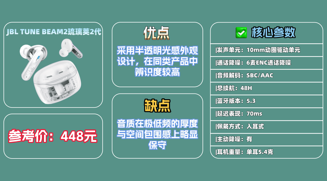 10、J BL T UNE BEAM2琉 璃荚2代蓝牙耳机