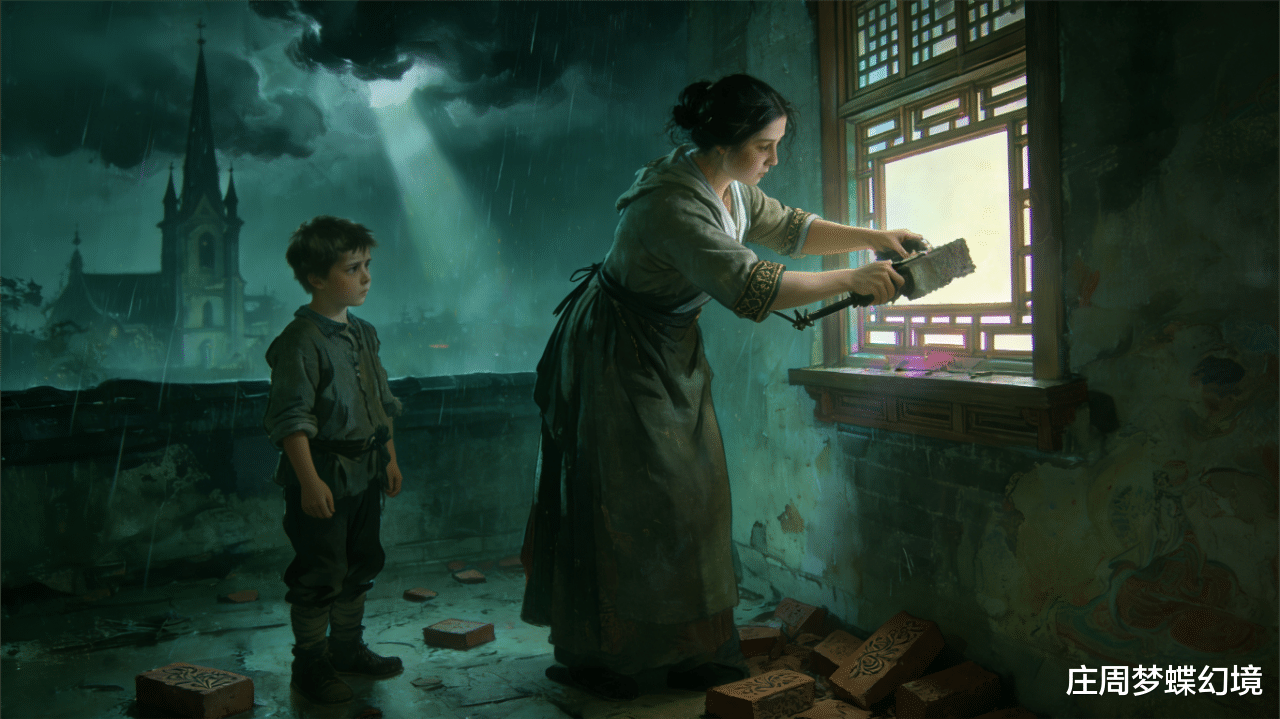 只是妇人的疯病越发古怪:她天天学泥瓦匠的样子,搬着砖石往窗户上垒,谁要是敢拿走一块,她就滚在地上哭嚎,声音尖得像要把房顶掀了。没几天,两间屋子的窗户就被堵得密不透风,连一丝月光都漏不进来。砖石用完了,她又端着泥巴堵墙上的缝隙,从早忙到晚,脸上沾着泥也浑然不觉。等所有缝隙都堵死,她竟找出了厨房里的菜刀,坐在桌边“霍霍”地磨,刀锋反光映在她空洞的眼睛里,看得人心里发毛。