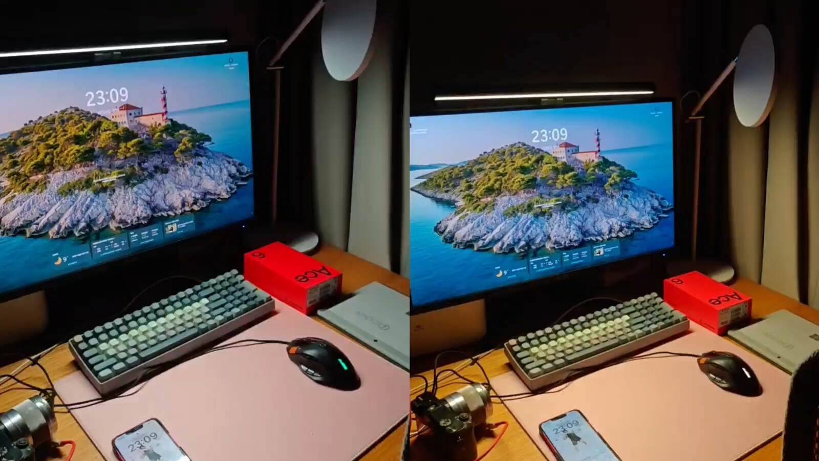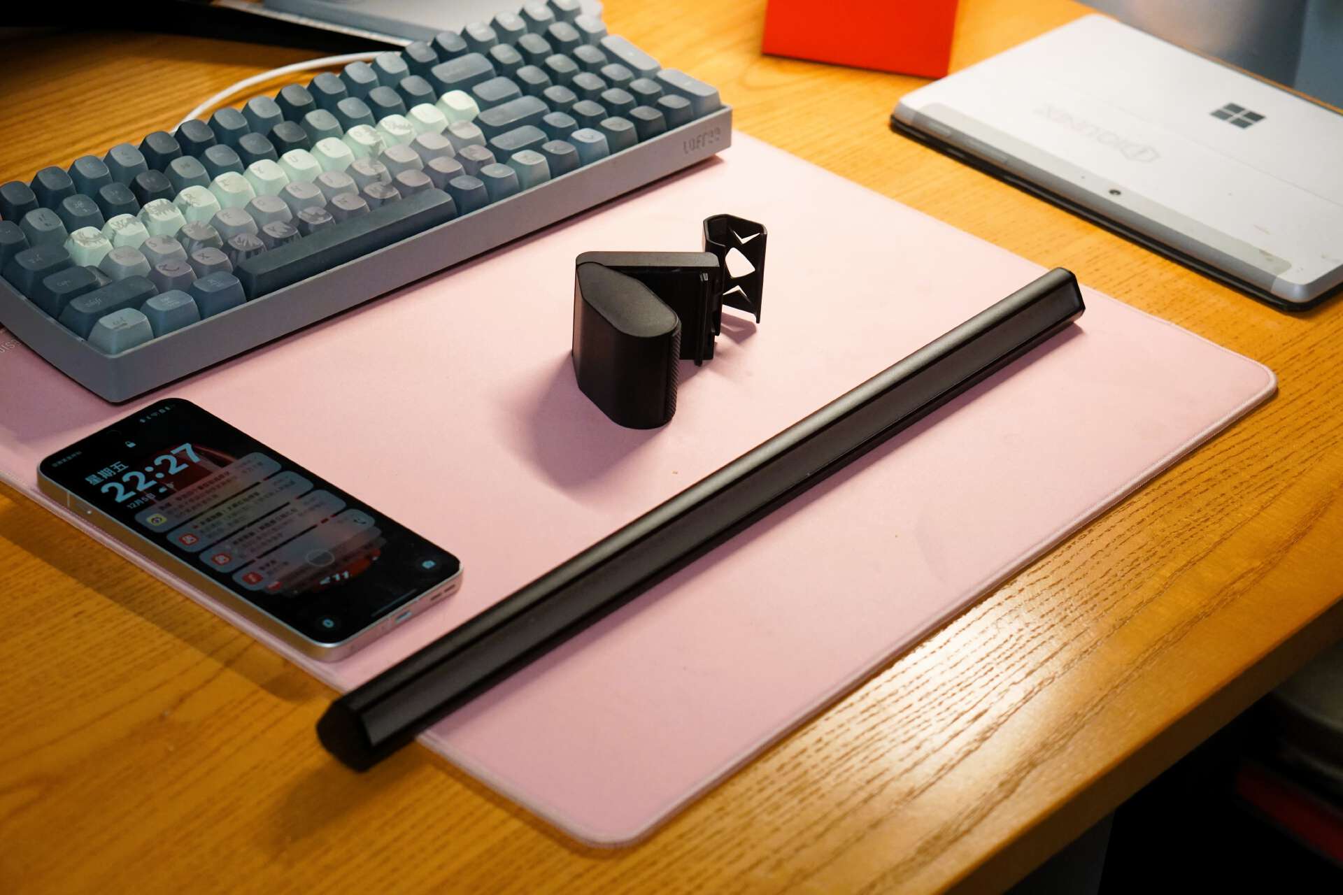现在SKR1的17.5°黄金光面,直接把光精准“铺”满桌面:从屏幕上的文献PDF,到键盘旁的打印稿,再到放笔的小角落,亮度匀得像窗边自然光,不用再一手按草稿一手挡光,码字的速度都快了点!