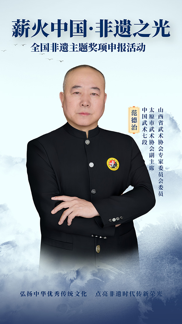 范德治,1964年生于山西太原,杨式太极拳宗师杨振铎先生亲传弟子,当代杨式太极拳重要传承人。自幼习武,精研长拳及器械,后专攻杨氏太极拳,四十余载寒暑不辍,武德与拳艺并重,被誉为“德艺双馨”的太极实践者与传播者。