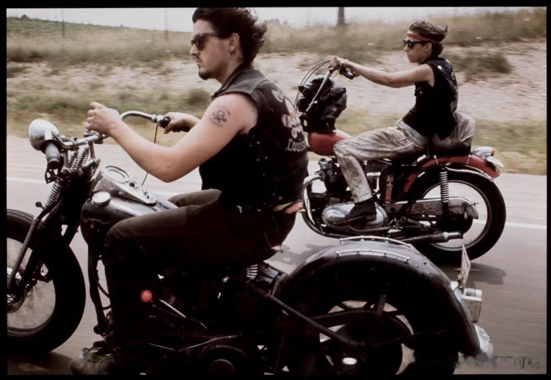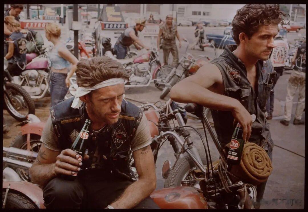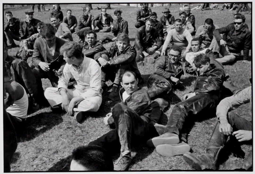 莱昂最出圈的作品,绝对是《飞车党》。上世纪60年代,他想记录美国摩托帮的生活,但觉得远远拍照太没劲。于是他干脆买了台摩托车,直接加入芝加哥的“摩托党”,和他们一起飙车、住通铺、冒险。