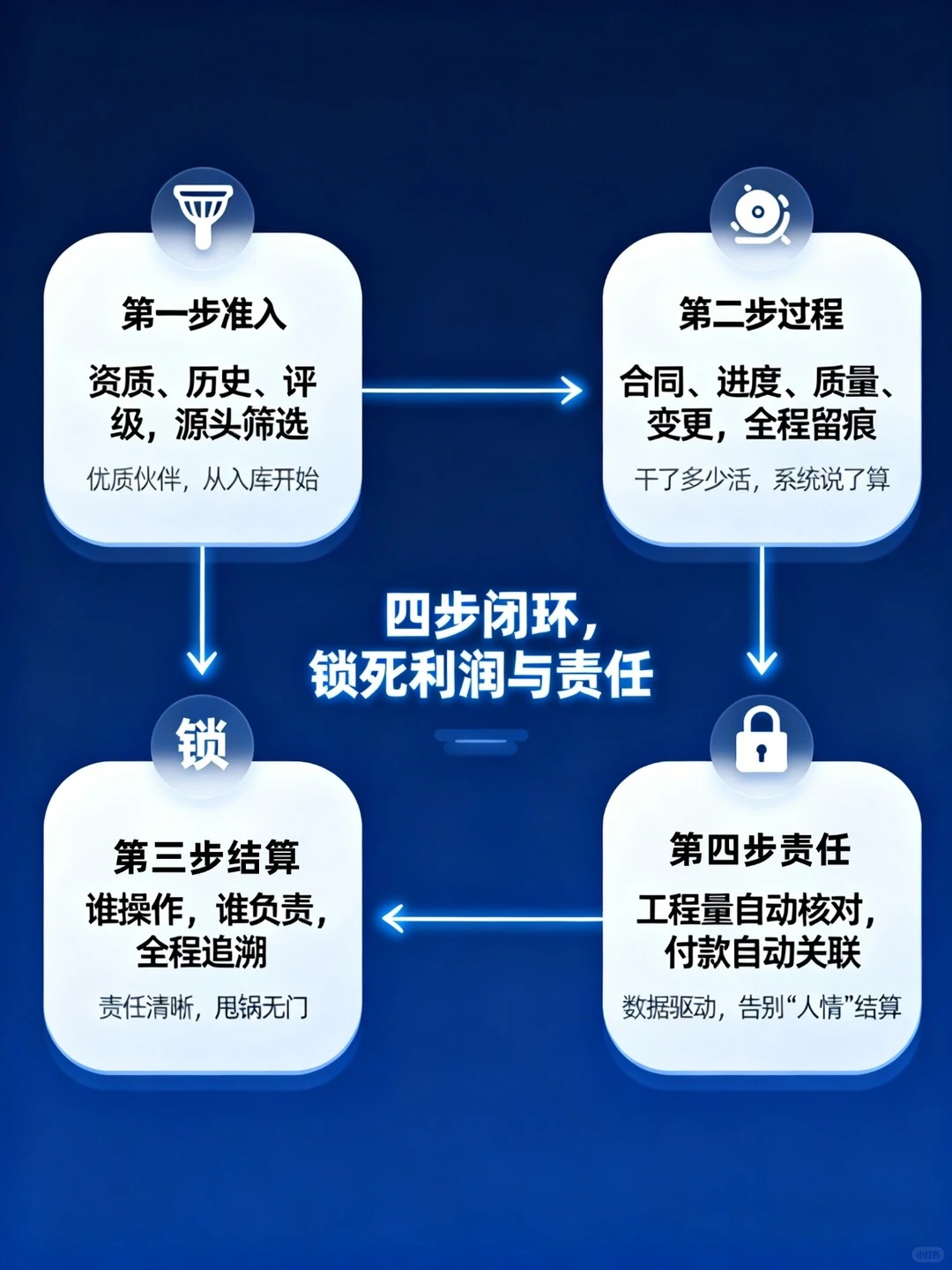接活时算得美,结算时利润没了? 分包一多就扯皮,质量进度款款是坑? 别让利润被层层“分”走! 教你用系统把分包利润和责任“焊死”。 - ⚠️ 三大“利润黑洞”: 1️⃣ 价格黑洞:口头定价、变更随意、报价混乱 2️⃣ 过程黑洞:进度靠报、质量靠催、干了多少全凭嘴 3️⃣ 结算黑洞:付款超付、结算扯皮、项目结束还在吵 结果:你忙前忙后,分包赚得比你多;出了事,锅还得你背。 - 🔒 四步“锁死”法: ① 准入锁:资质线上存、历史有记录、评级有依据 ② 过程锁:合同在线审、进度线上报、质量线上检、变更线上走 ③ 结算锁:工程量自动核、付款自动联、利润实时算 ④ 责任锁:全流程留痕,谁操作谁负责,甩锅无门 - ✅ 最终实现: 利润看得见|风险控得住|结算零扯皮|管理变轻松 - 🏗️ 适合:分包队伍多、想从“关系管理”转向“规范管理”、受够扯皮的工程团队。 - 如果你们也: ▷ 分包一多就失控 ▷ 结算总有“意外” ▷ 质量进度天天救火 是时候用系统改变游戏规则了。 - 👉 想知道你的项目有多少“隐形利润”被分包环节吃掉了? 快来体验我们的智能工程管理软件吧~