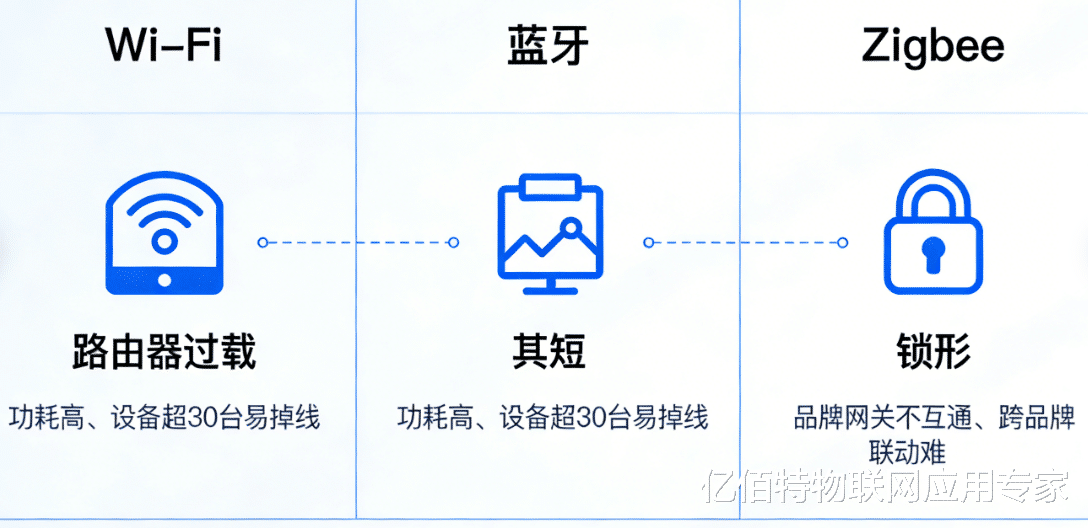 在深入 Matter over Thread 之前,我们得先看清现有的三种主流连接方式的局限: