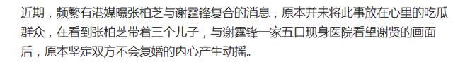 如果是真的,那大家绝对会送上祝福,但还不等大家得出答案,就有港媒曝出了另一个消息,那就是一家五口赴医院疑看望了谢贤,因为此前谢贤被传因为中风进了医院,那一家五口回港的说法也就说的过去了。