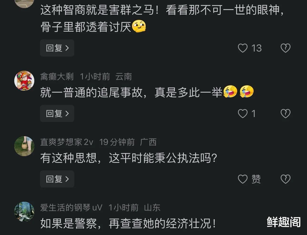 当然,也有网友表示,不见得如此,也许穿家人的。这个时候换上,大概是显示自己有背景。总而言之,她这种行为让网友反感,不是调侃就是指责。另有专业人士称,根据相关的规定,如果非法持有、使用警察制式服装的,可能面临行政处罚。