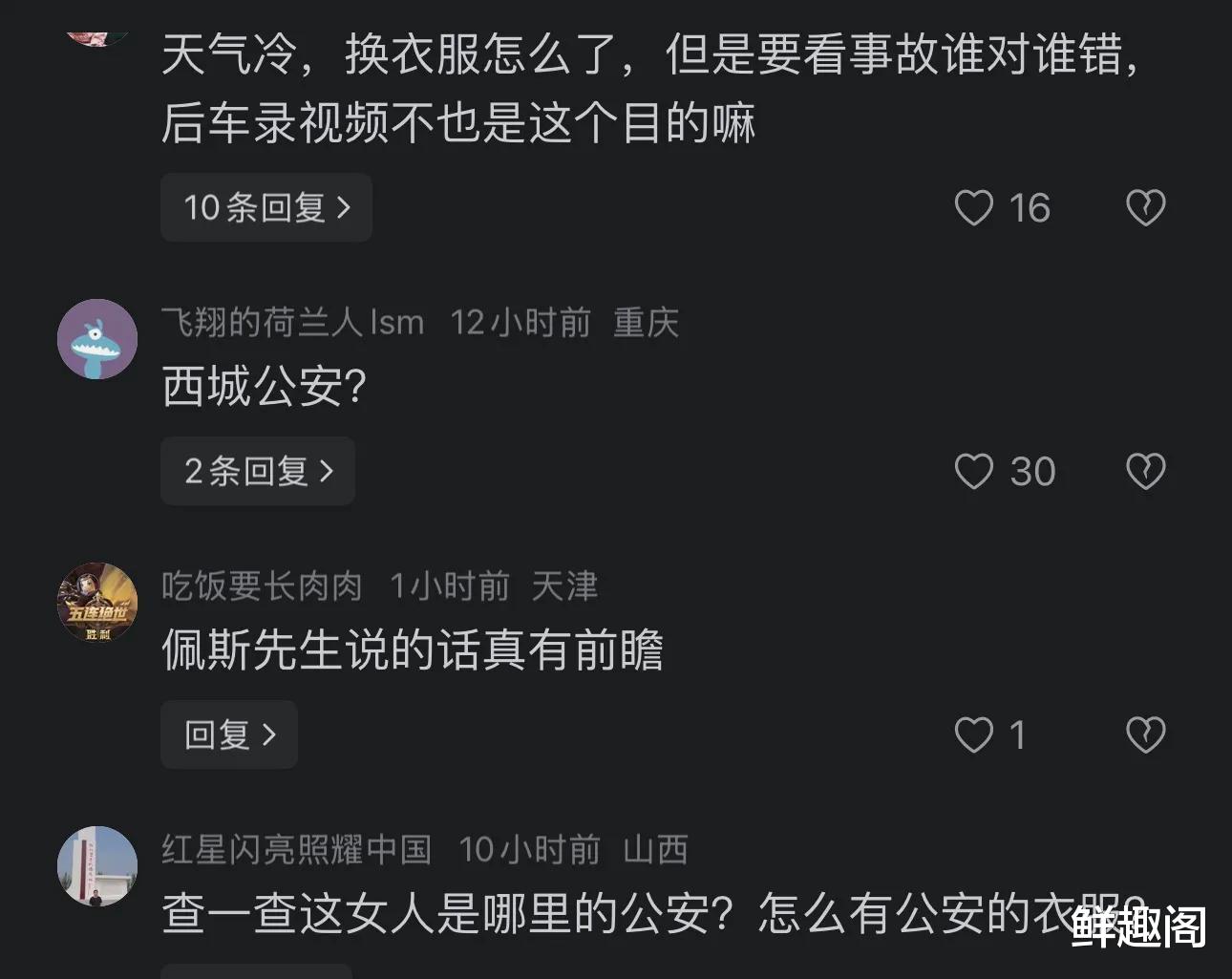 这段视频被曝光后,立即在网上引起轩然大波,网友称这位女子为“换衣姐”,同时也开始纷纷猜测女子的身份。有的网友称,这位女子换衣服的举动明显就是想吓唬人;也有网友猜测她或许就是民警。