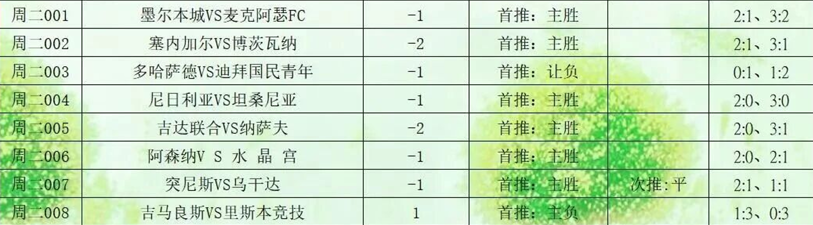 周二007 非洲杯 突尼斯vs乌干达方向:胜分数:2-1 1-1球球:2/3