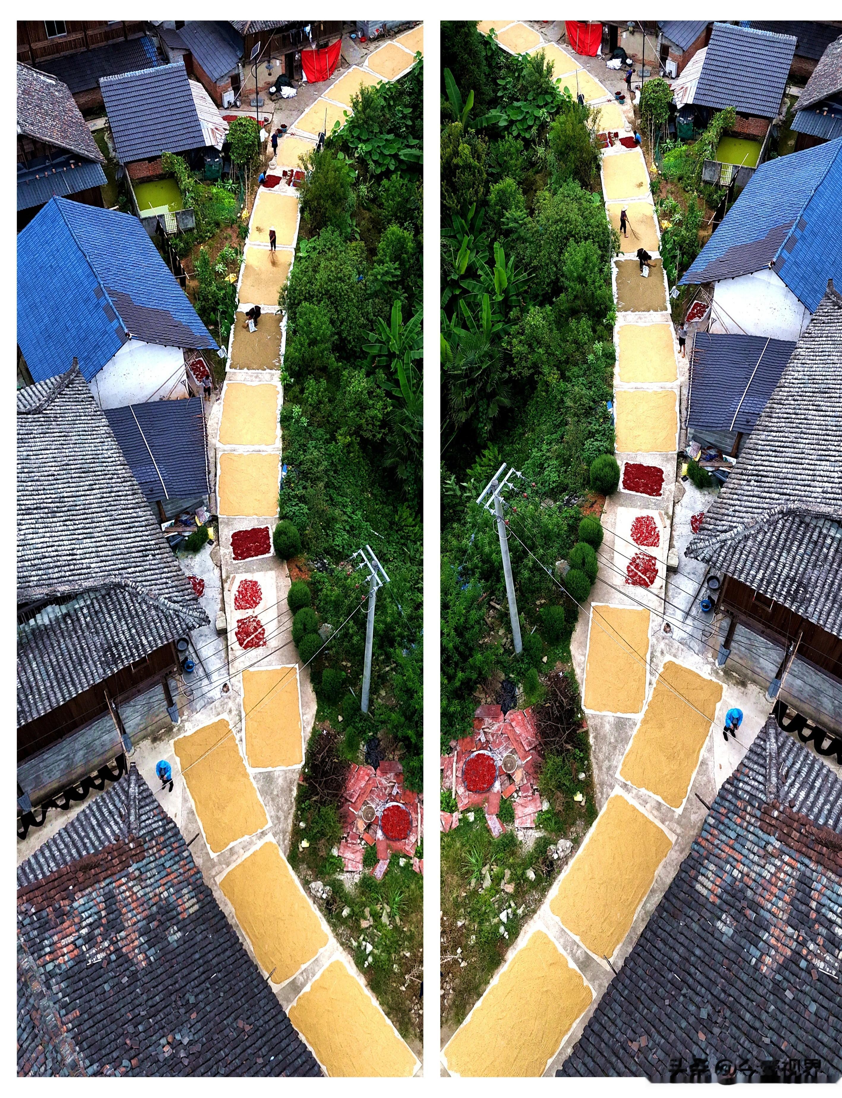 金秋时节,贵州省黔东南苗族侗族自治州从江县东朗镇摆啊苗寨,处处洋溢着丰收的喜悦,漫山遍野的朝天椒如火焰般热烈,将苗寨装点得红火艳丽,苗族同胞们正趁着晴好天气,在房前屋后、院坝晒场忙碌着晾晒辣椒、稻谷等秋收作物,勾勒出一幅美丽乡村丰收“晒秋图”。