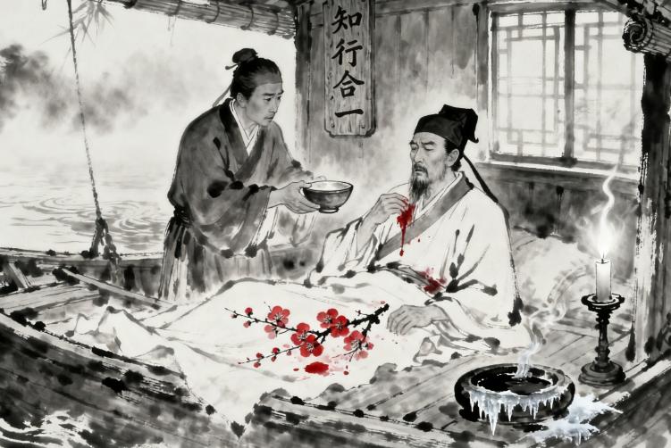 明嘉靖七年十一月,江西南安府的一艘官船上,寒风裹挟着江水的湿气,悄无声息地钻进船舱。船内烛火摇曳,映照着王阳明苍白却依旧坚毅的脸庞。这位集思想家、军事家、文学家于一身的大儒,此刻正虚弱地靠在铺着粗布被褥的榻上,呼吸微弱得如同风中残烛,唯有那双眼睛,偶尔睁开时,仍闪烁着洞悉世事的澄澈光芒。