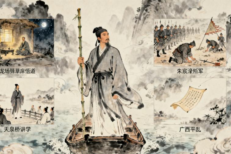 王阳明缓缓睁开眼,目光扫过围在船舱内的弟子与随从,最后落在窗外漆黑的江面上,仿佛在透过夜色,回望自己波澜壮阔的一生。他想起年少时立下 “读书学圣贤” 的志向,想起被贬龙场时在荒山中悟道的顿悟,想起平定宁王朱宸濠叛乱时的惊心动魄,想起多年来四处讲学、传播心学的执着…… 这一生,他历经坎坷,饱受非议,却始终坚守本心,从未动摇。