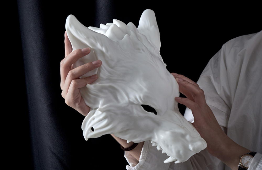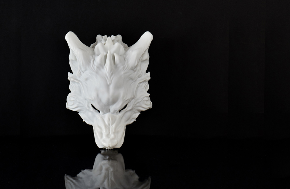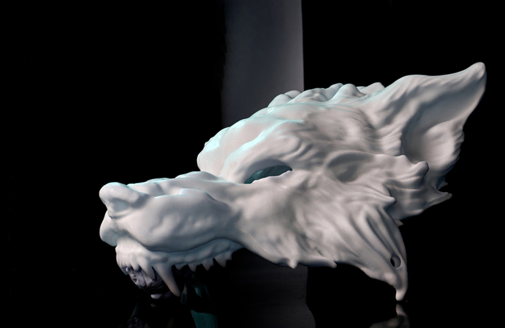 3D打印狼首面具手板的制作过程大致如下: