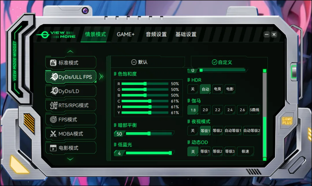 针对不同类型游戏,DyDs提供了两种专属模式。其中DyDs/LD模式可大幅拓展画面动态范围,非常适合3A/MOBA 等游戏场景。