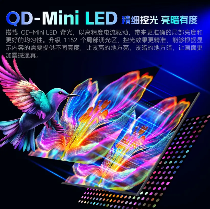 与Mini-LED多分区背光技术相辅相成的还有DyDs黑洞视觉技术。