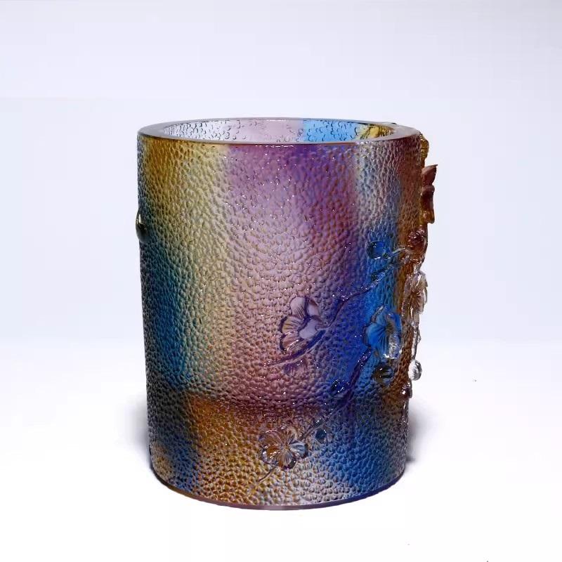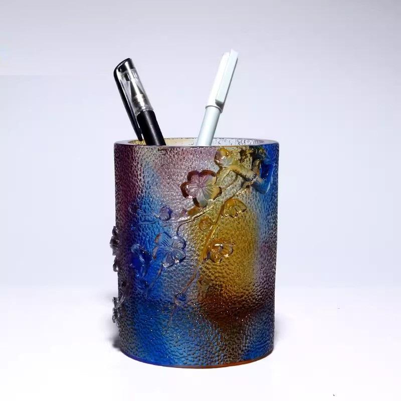 在文化层面,它承载着深厚的文化内涵。梅花在中国文化中象征着坚韧、高洁、不屈不挠,是文人墨客笔下的常客,代表着中华民族的精神品质。而古法琉璃工艺传承千年,是传统文化的瑰宝,两者结合,让笔筒成为文化传承的载体 。