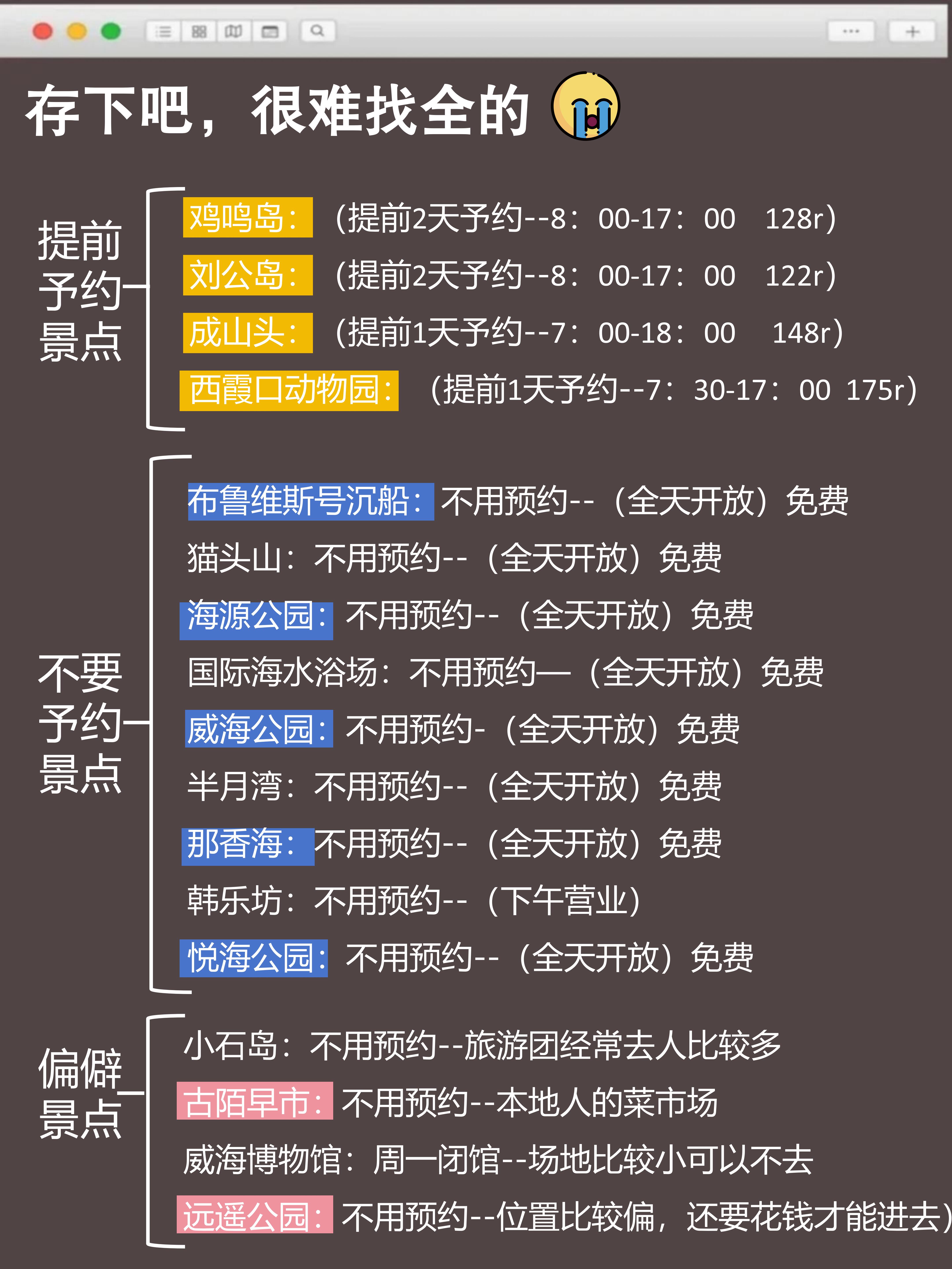 第一次来威海的姐妹们👭,记得要做好攻略再来威海,威海真的不适合临时起意😞,下面是我整理的威海旅游攻略,真的很实用~分