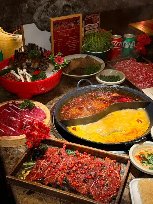 正宗川味火锅,牛油锅底越煮越香。毛肚七上八下脆嫩爽口,虾滑 Q 弹能吃到大颗虾仁,冰汤圆解辣超赞。