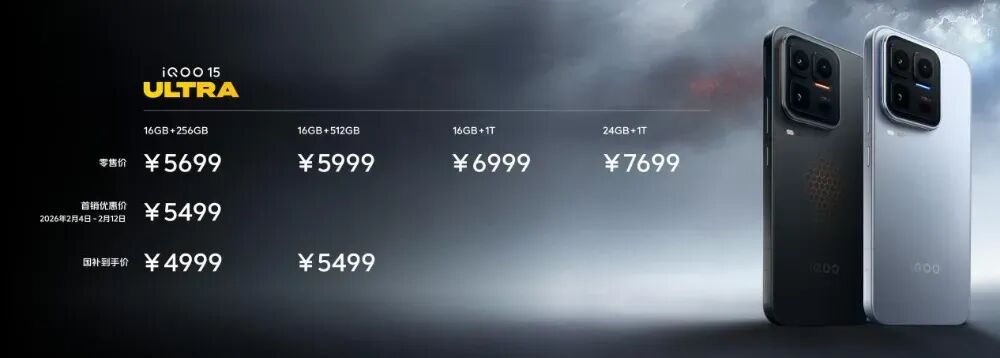 16GB+256GB 版本首销优惠价 5499 元( 2 月 4 日-2 月 12 日),16GB+512GB 版本售价 5999 元,两个版本均能再享受至高 500 元的国补优惠。