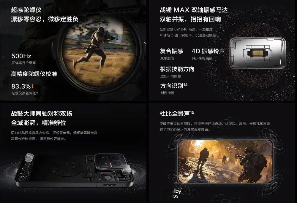 还有超感游戏肩键、超感陀螺仪和超感触控。首发战锤 MAX 双轴振感马达,搭配战鼓大师双扬与杜比全景声。