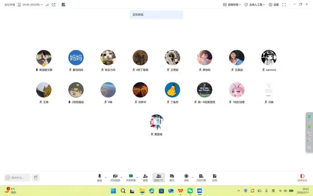 会议过程中,参与的同学认真聆听、积极交流,分享假期学习心得与生活感悟;家长们在线旁听,进一步明晰了假期监护与陪伴的重要性,家校携手形成了温暖有力的协同育人氛围。