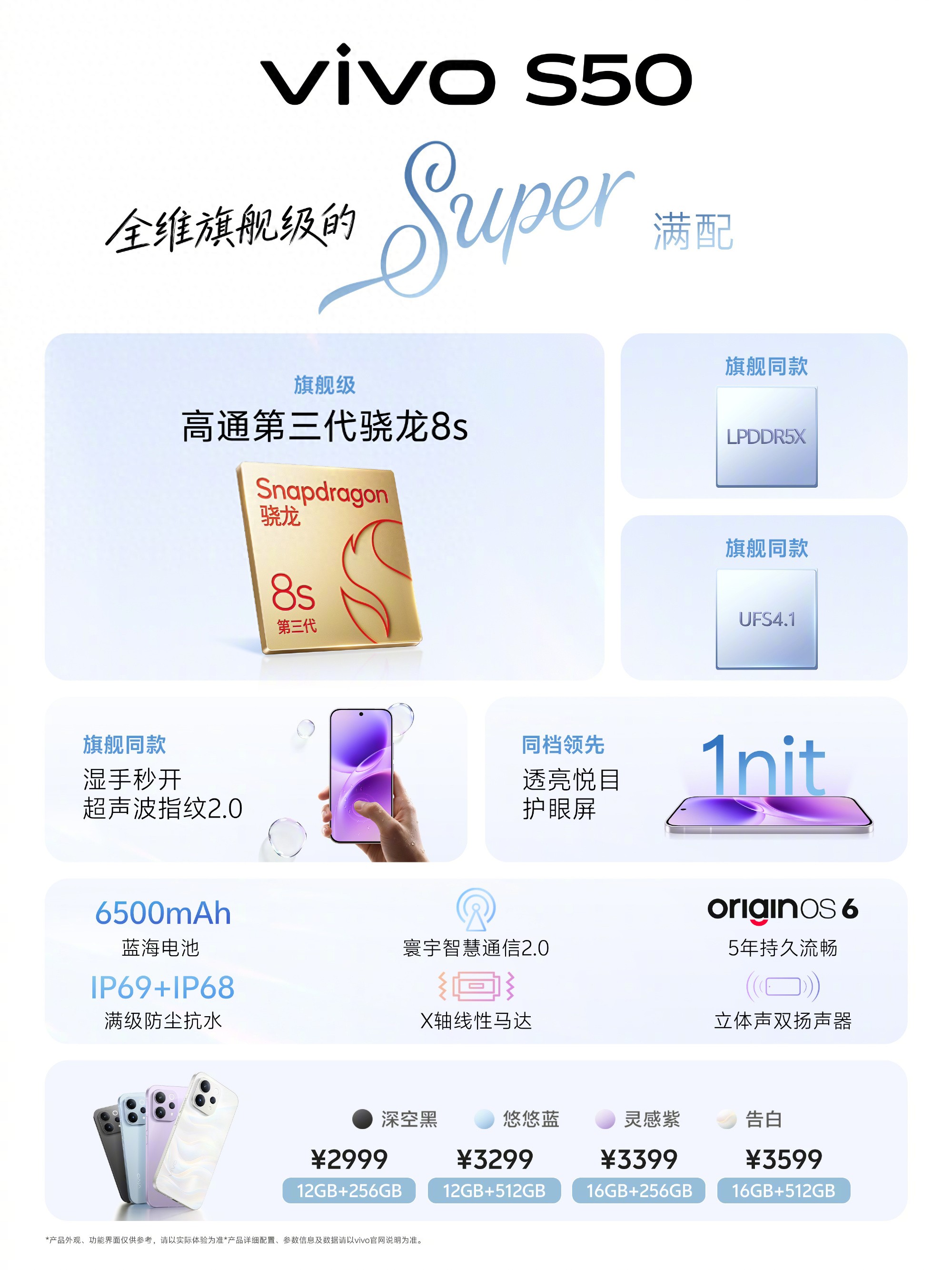 对于预算有限但又追求全面体验的学生党来说,年底换机最纠结的莫过于如何在价格和配置之间做取舍。但vivo S50系列的出现,似乎给出了一个完美的解决方案。2999元的起售价,给到的却是一套没有凑数的满血配置:旗舰芯片、潜望长焦、超大电池、护眼好屏以及超声波指纹。这种“甚至不像是S系列”的堆料,让它成为了同价位段最具性价比的选择。