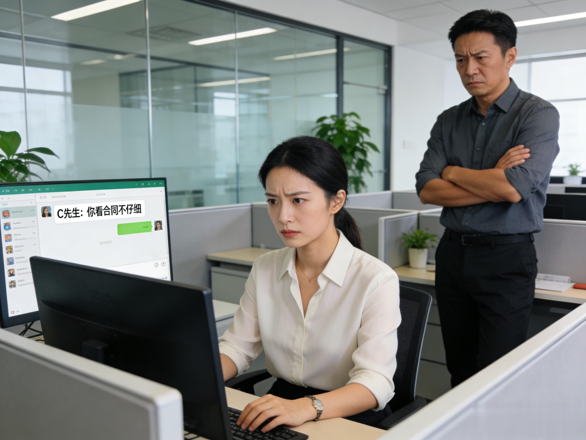 十点多,我把成本表发到工作群里,还没等我松口气,C 先生就在群里发话了,说我看合同不仔细,一句话,把我整个上午都拖进了“掰扯”的状态。