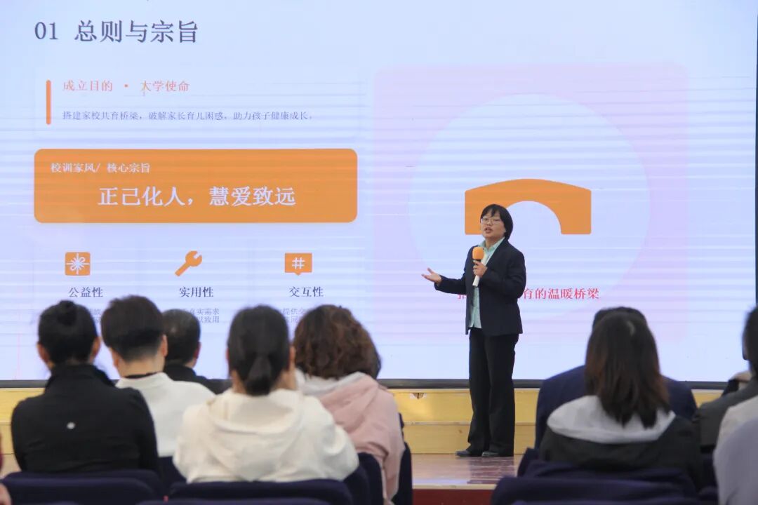 翟校长指出,开办家长大学,是学校打通家校育人壁垒、凝聚家校育人合力的关键举措,旨在打造集思广益、赋能成长、护航未来的公益性育人共同体;