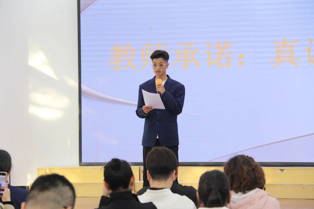 班主任代表张泽文老师庄严表态,作为家校沟通的桥梁纽带、学生成长的引路人,全体班主任将坚守教育初心,恪守育人使命,始终以赤诚之心关爱每一位学生,以专业之力做好家校协同,以责任之行践行教育担当,全力配合家长大学各项工作,用心搭建家校沟通桥梁,精准施教、悉心守护,绝不辜负学校的重托与家长的信任。