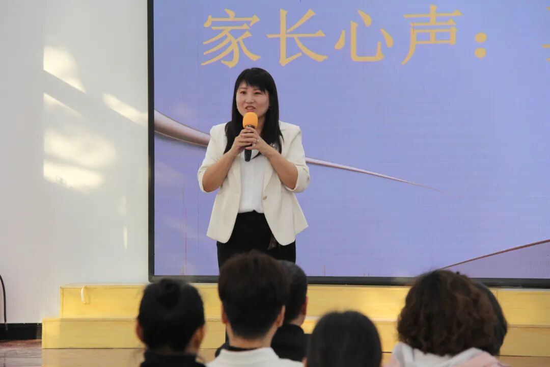 家长代表、高二(3)班岳泽宣妈妈满怀深情发言,她坦言内心满是激动与感恩,代表全体家长向默默耕耘、潜心育人的全体教职工,致以最崇高的敬意与最诚挚的感谢。