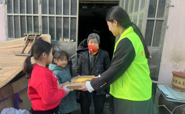 随后,活动进入了充满趣味的手工披萨制作环节。文明实践志愿者提前准备好了面团、芝士、蔬菜、香肠等丰富食材。在家长和志愿者的耐心指导和安全保障下,孩子们化身“小小厨师”,认真地将面团擀成圆饼,细心涂抹酱料,再发挥创意摆放自己喜欢的食材。当一个个承载着创意与期待的披萨被送入烤箱,服务站内渐渐香气四溢,充满了孩子们的欢声笑语和期待的喜悦。披萨出炉后,在志愿者的带领下,几位小朋友代表将亲手制作、包装好的披萨,送到了小区几位常年辛勤工作的环卫老人手中。这一送一接之间,传递的不仅是美味,更是对平凡劳动者的深深敬意与社区大家庭的真挚关怀。