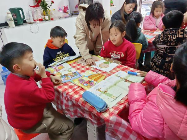 活动在轻松愉快的氛围中拉开帷幕。首先进行的是英文绘本阅读环节。在文明实践志愿者的带领下,孩子们围坐一起,共同走进色彩斑斓的绘本世界。志愿者通过生动形象的讲述、互动提问,激发了孩子们对英语故事的兴趣与好奇心。孩子们听得津津有味,不时跟着志愿者模仿单词发音,在潜移默化中收获了语言学习的快乐。