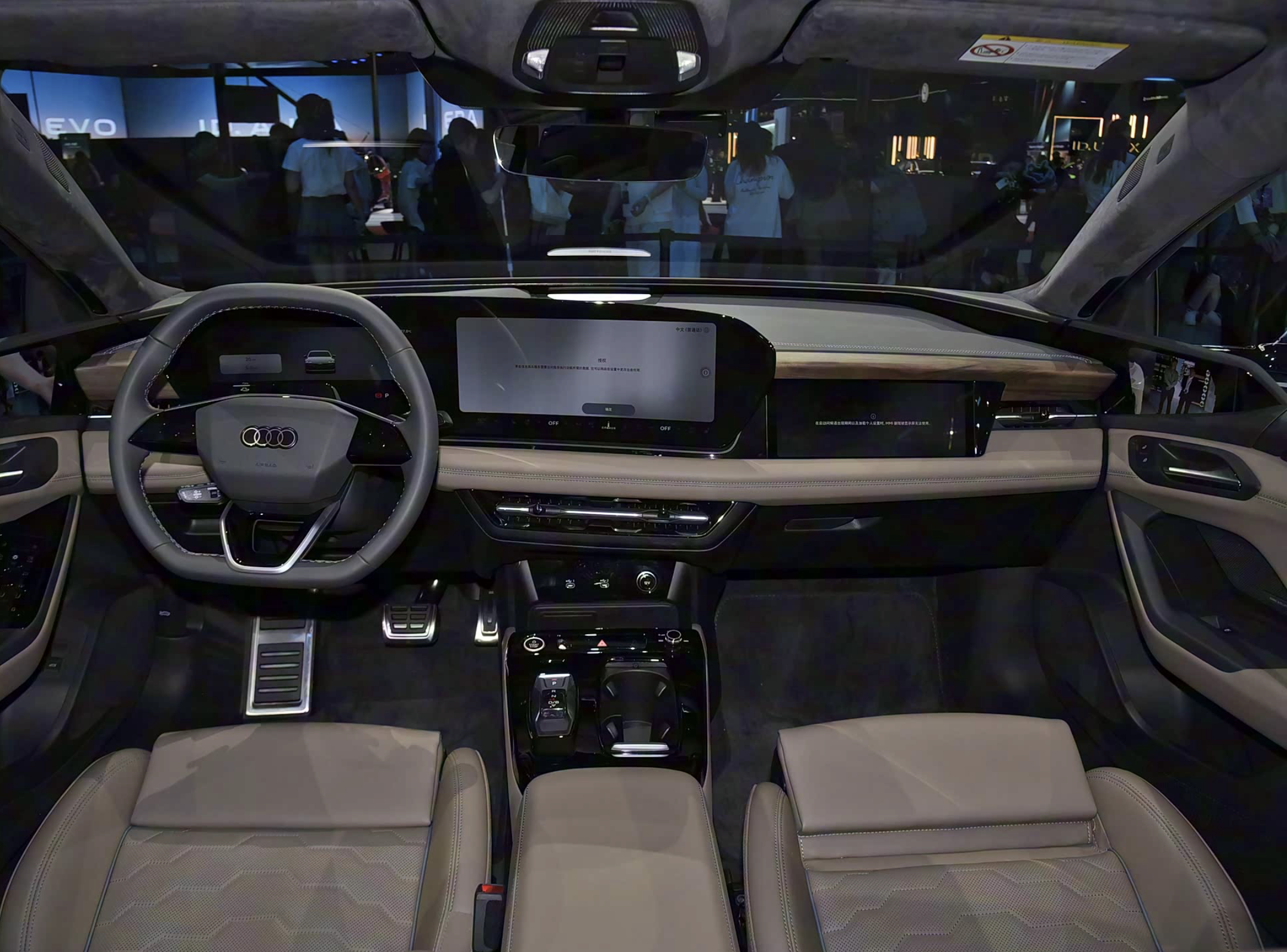 进入车内,奥迪A6L e-tron对内饰的升级同样以“强化体验”为核心。定制化运动座椅拥有更出色的包裹性,并采用 Alcantara 材质,在保证舒适触感的同时,为激烈驾驶提供可靠支撑。中控台环绕驾驶员设计,三块屏幕的尺寸分别为11.9英寸、14.5英寸、10.9英寸。副驾屏可以在行车过程中开启,还配备了第二代增强现实抬头显示AR-HUD,可以显示速度、交通标识、导航等信息。环抱式的中控台配备了奥迪RS风格的运动方向盘,碳纤维装饰和红色缝线的组合,带来了更多运动气息。新车还将搭载华为乾崑辅助驾驶系统,实现城区点对点自动导航辅助驾驶NOA。