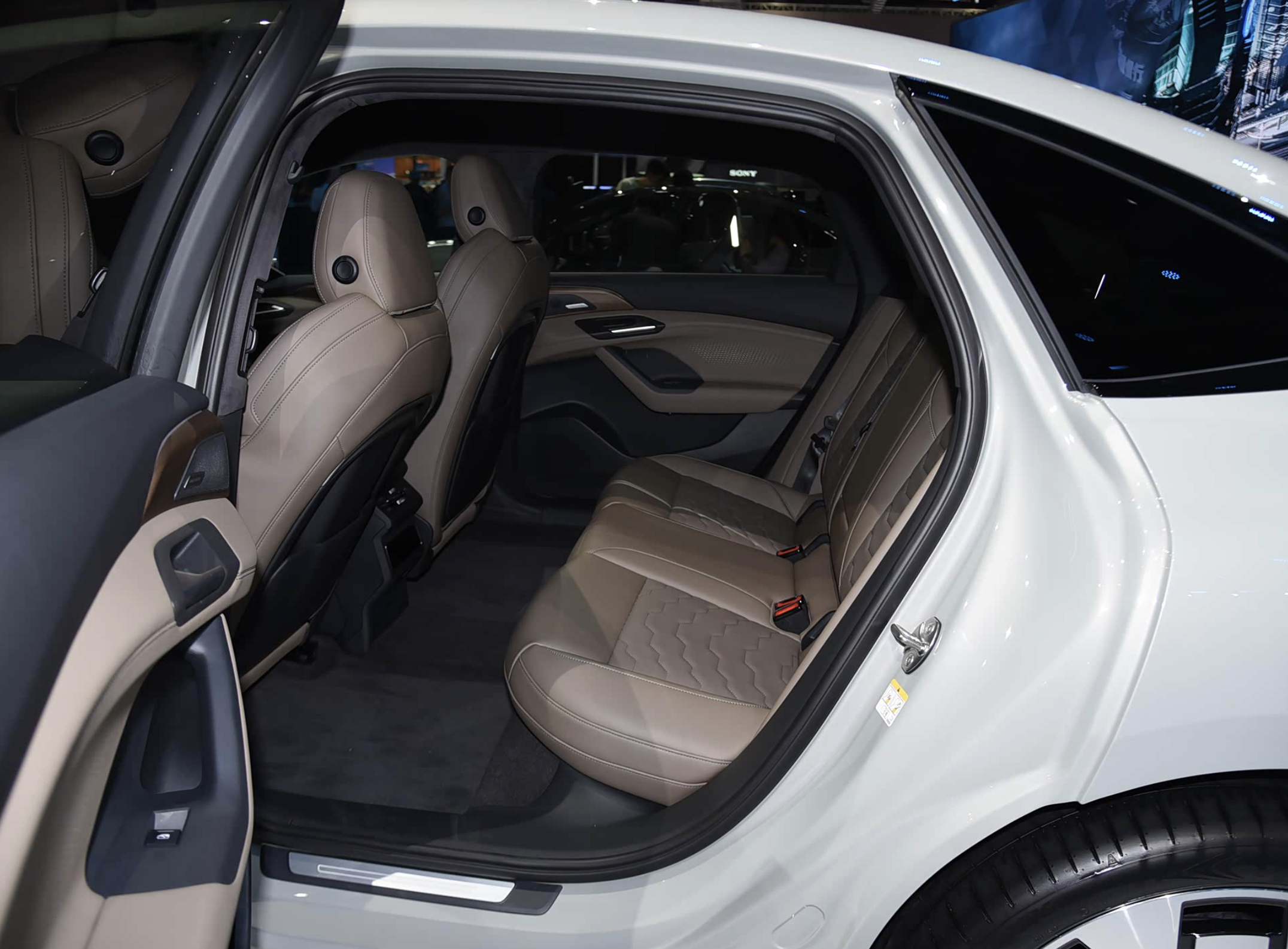 奥迪A6L e-tron的车身基于燃油版奥迪A6L打造,弧线形的车顶是一整块穹顶,尾端还配备了鲨鱼鳍样式的天线,车窗加入了黑色装饰条,并与黑色的A/B/C柱和全车黑色隐私玻璃融为一体,笔挺的腰线依旧保持了中大型豪车的稳重感和气派感。前低后高的裙线搭配着20英寸的花瓣式轮圈(搭配255/40 R20规格的轮胎),还使用了创新设计的电控门把手,电子后视镜,让奥迪A6L e-tron始终走在了科技的最前沿。车身尺寸来看,新车长宽高分别为5073/1942/1522mm,轴距为3076mm。车内配备了真皮沙发座椅,Bang & Olufsen高级3D音响系统通过20个扬声器,在后排营造出沉浸式3D音效,让音乐会般的听觉享受触手可及。