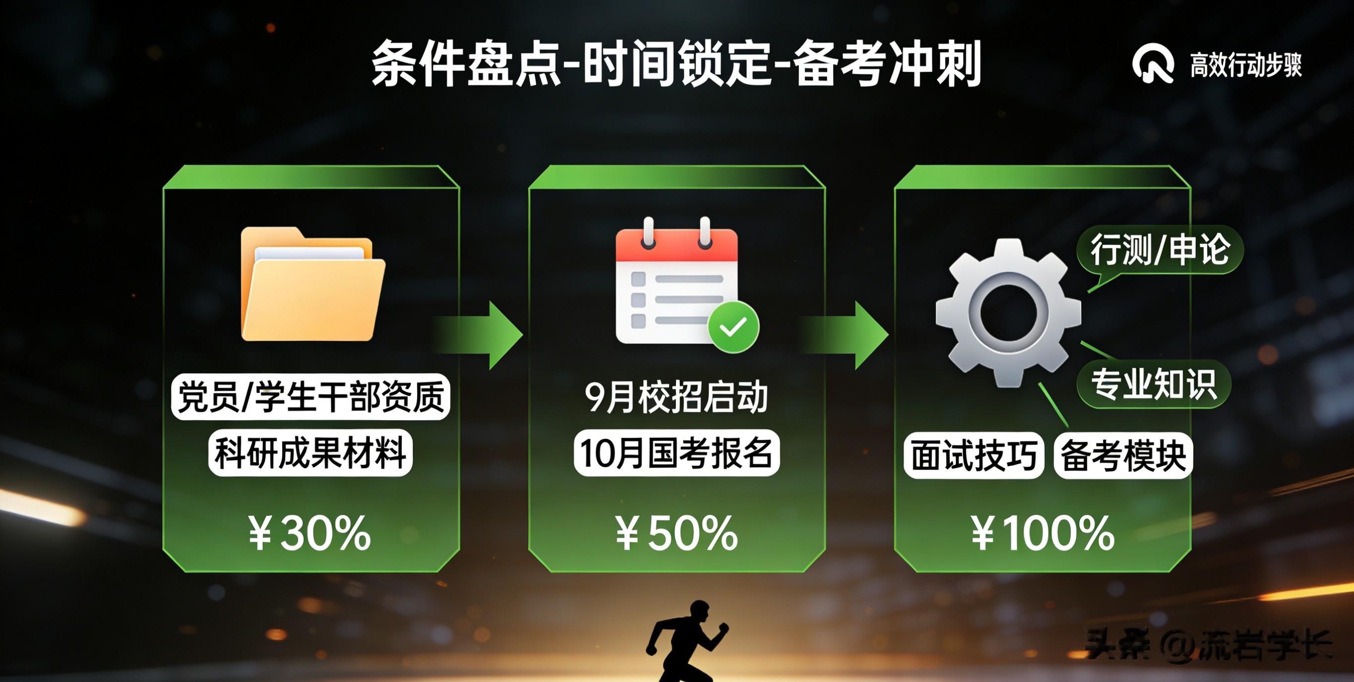 现在就行动:3步规划不浪费时间1. 盘点自身条件:确认是否符合党员、学生干部、英语六级等岗位要求,整理成绩单、获奖证书、科研成果等材料,制作针对性简历。