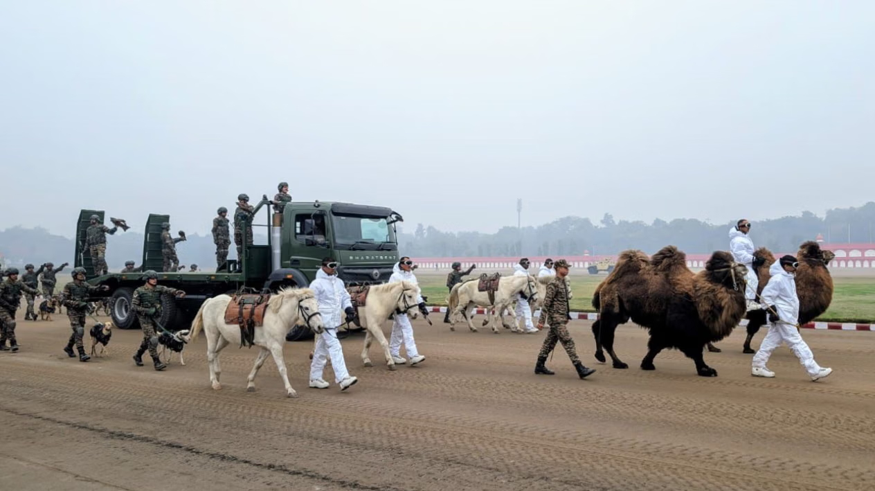 据预告,在“动物方阵”的最前面,将由两只双峰骆驼开路。印度方面介绍,这些骆驼可以适应低温、低氧及高海拔(15000英尺以上)的高原环境条件,并承担负重250公斤的任务。它们对于水和食物的需求非常少,但可以完成长途运输的关键使命。