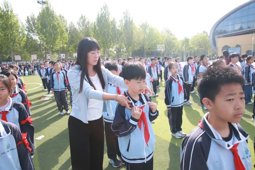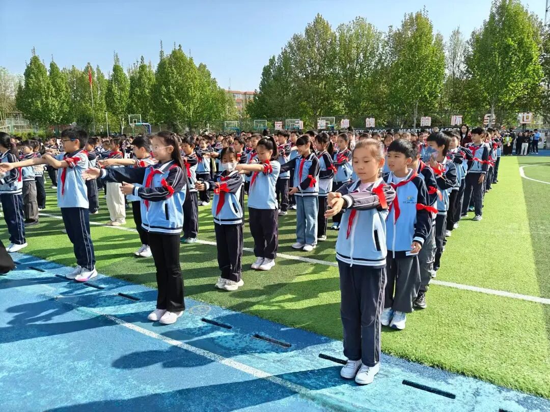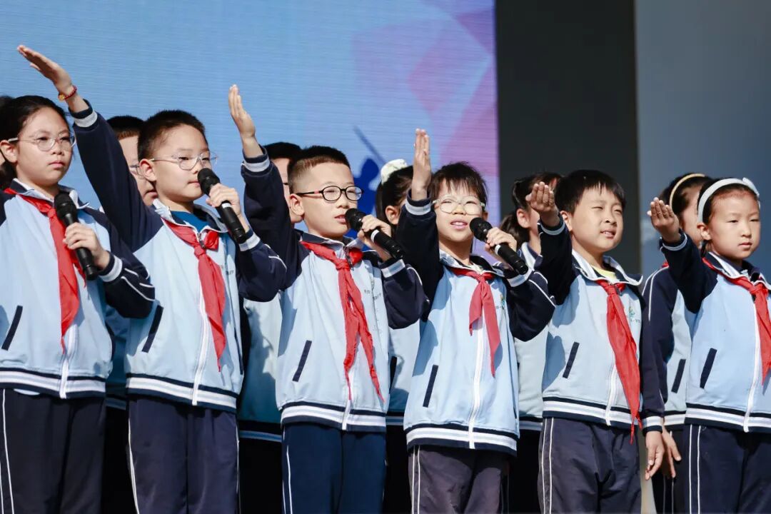 衣冠正,心方正。全体学子以中华传统礼仪“三正法”,整理衣冠、涵养品行,展现芙蓉少年清雅灵动的风采。在大队长带领下,集体宣誓。铿锵誓言回荡操场,少年之志坚定昂扬。成长之路,校家社同心相伴,通运街道王敏科长、教师代表、家长代表、学生代表用真挚话语传递温暖力量,以礼润心、以志领航,共同守护少年向阳成长。