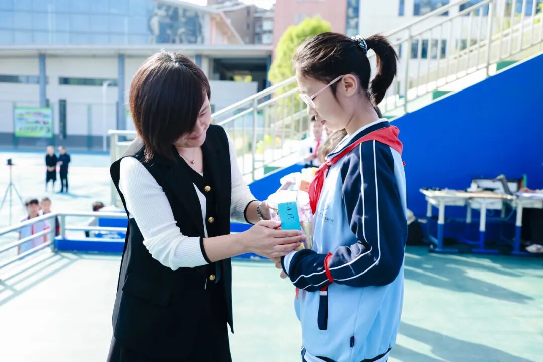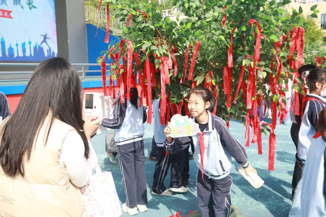 同学们将《致十年后的自己》放入时间胶囊,由校长亲自封存,许下十年之约;书记为每位学子送上“成长豆”,寓意播种梦想、静待花开;家长为孩子送上精心准备的礼物,传递最深的祝福与牵挂。