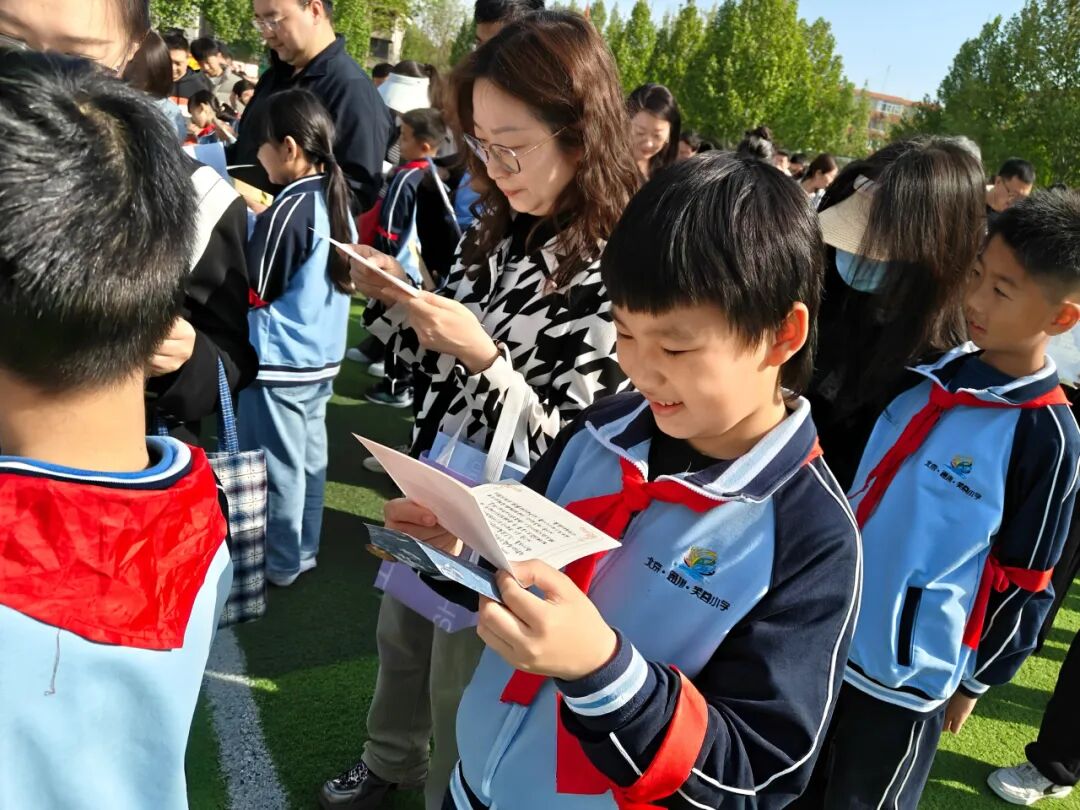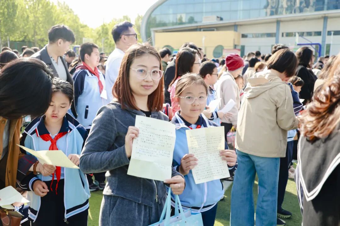 家长代表深情宣读家书,字里行间满是养育的温情与殷切期盼;五、六年级学长学姐送上真挚祝福,三年级弟弟妹妹以诗歌《我们仰望你们的十岁》传递美好祝愿。家长与孩子互换信件,纸短情长,爱意满满,在暖心互动中读懂陪伴、感恩守护。
