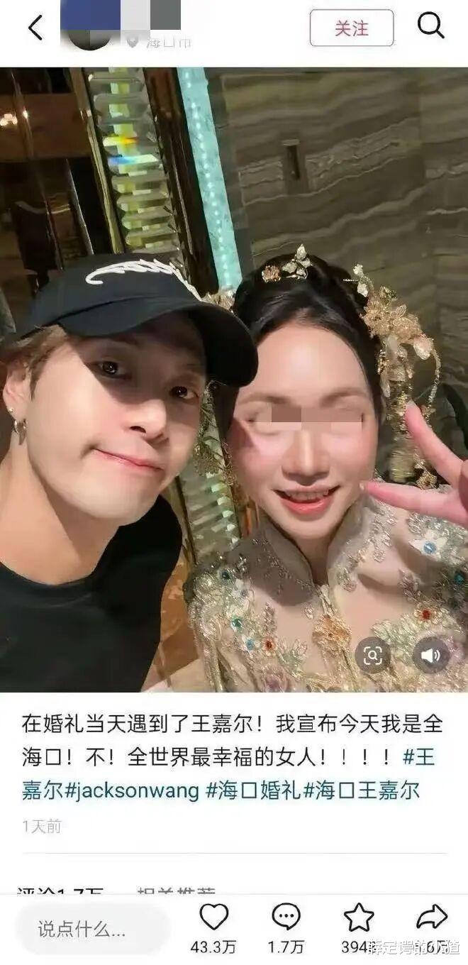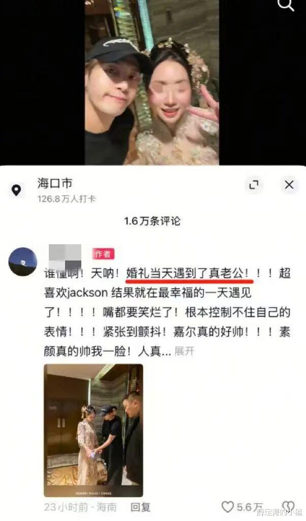 跨年夜刚过,海南一场婚礼就凭着“顶流突袭”的戏码冲上热搜,只不过这场热度的中心不是新人,而是新娘与王嘉尔的合影,以及那句引爆争议的“婚礼当天遇到了真老公”。