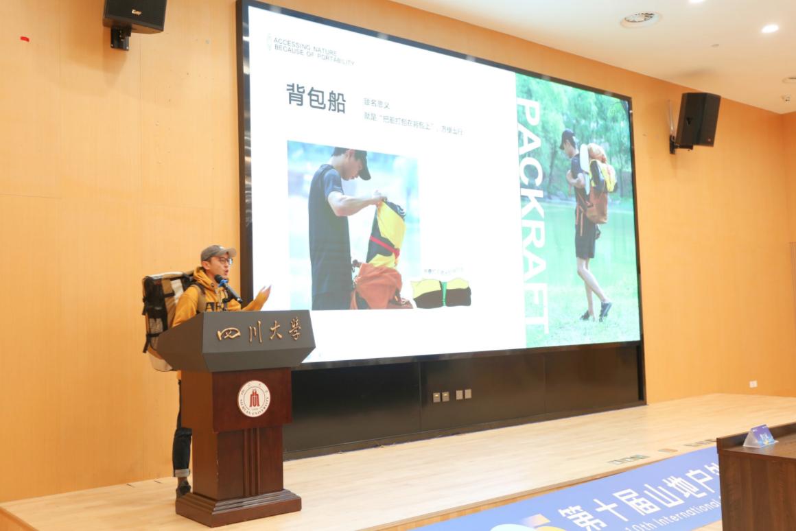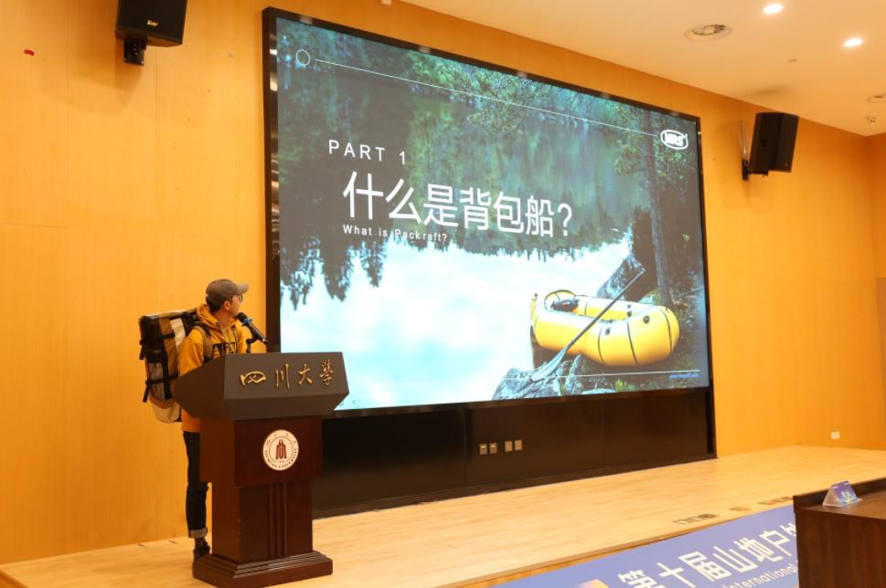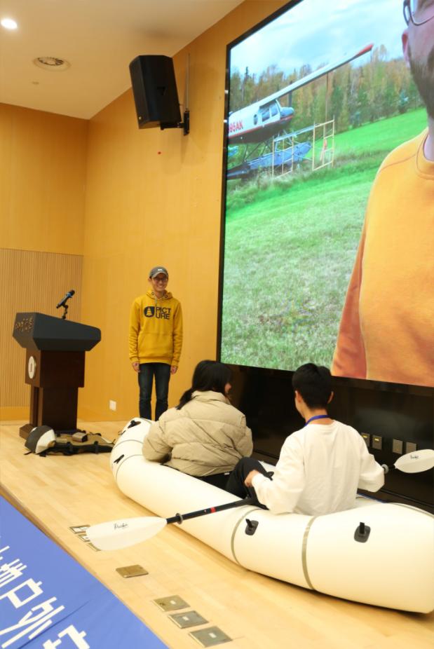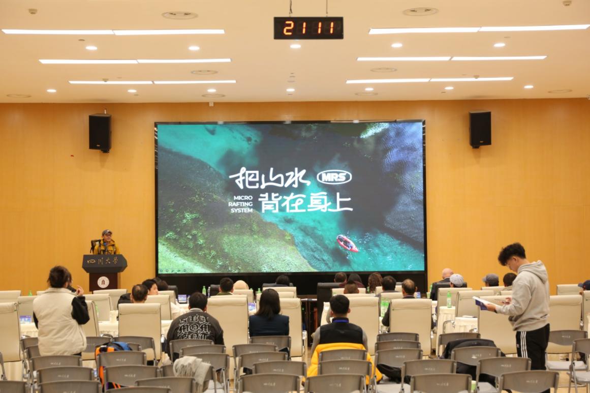 在大会演讲及主题沙龙环节,MRS作为宣讲嘉宾分享了以“背包船”为代表的水上装备创新与运动文化;在大会理论单元特别策划了“户外电影嘉年华”活动。通过集中展映全球背包船探险纪录片,将河流叙事与真实的探险精神带入四川大学活动现场。观影环节,来自MRS划水学院教练结合影片内容,解读不同水域的地理特征与划行技术要点,将银幕上的冒险故事转化为实用的户外知识,让参会师生对背包船水上运动有更加深入的理解。